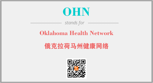上述内容是“Oklahoma Health Network”作为“OHN”的缩写,解释为“俄克拉荷马州健康网络”时的信息,以及英文缩略词OHN所代表的英文单词,其对应的中文拼音、详细解释以及在英文中的流行度和相关分类、应用领域及应用示例等。