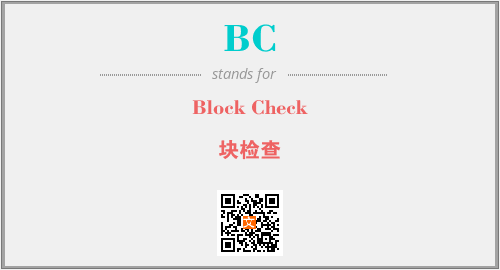 上述内容是“Block Check”作为“BC”的缩写,解释为“块检查”时的信息,以及英文缩略词BC所代表的英文单词,其对应的中文拼音、详细解释以及在英文中的流行度和相关分类、应用领域及应用示例等。