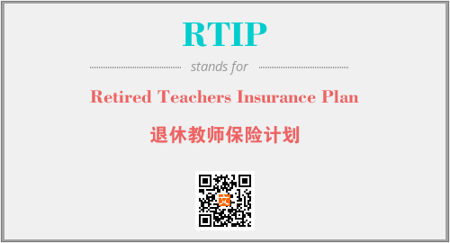 英文缩略词“RTIP”经常作为“Retired Teachers Insurance Plan”的英文缩写来使用,中文表示:“退休教师保险计划”。本文将详细介绍英文缩写词RTIP所代表英文单词,其对应的中文拼音、详细解释以及在英语中的流行度。此外,还有关于缩略词RTIP的分类、应用领域及相关应用示例等。