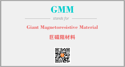上述内容是“Giant Magnetoresistive Material”作为“GMM”的缩写,解释为“巨磁阻材料”时的信息,以及英文缩略词GMM所代表的英文单词,其对应的中文拼音、详细解释以及在英文中的流行度和相关分类、应用领域及应用示例等。