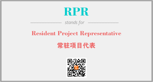 英文缩略词“RPR”经常作为“Resident Project Representative”的英文缩写来使用,中文表示:“常驻项目代表”。本文将详细介绍英文缩写词RPR所代表英文单词,其对应的中文拼音、详细解释以及在英语中的流行度。此外,还有关于缩略词RPR的分类、应用领域及相关应用示例等。