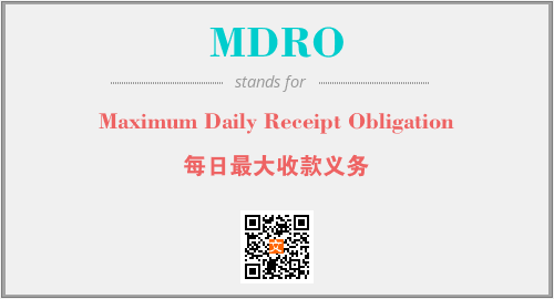英文缩略词“MDRO”经常作为“Maximum Daily Receipt Obligation”的英文缩写来使用,中文表示:“每日最大收款义务”。本文将详细介绍英文缩写词MDRO所代表英文单词,其对应的中文拼音、详细解释以及在英语中的流行度。此外,还有关于缩略词MDRO的分类、应用领域及相关应用示例等。