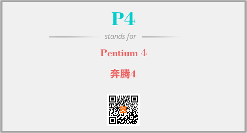 英文缩略词“P4”经常作为“Pentium 4”的英文缩写来使用,中文表示:“奔腾4”。本文将详细介绍英文缩写词P4所代表英文单词,其对应的中文拼音、详细解释以及在英语中的流行度。此外,还有关于缩略词P4的分类、应用领域及相关应用示例等。