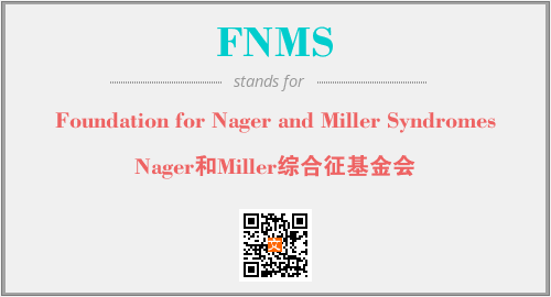 上述内容是“Foundation for Nager and Miller Syndromes”作为“FNMS”的缩写,解释为“Nager和Miller综合征基金会”时的信息,以及英文缩略词FNMS所代表的英文单词,其对应的中文拼音、详细解释以及在英文中的流行度和相关分类、应用领域及应用示例等。