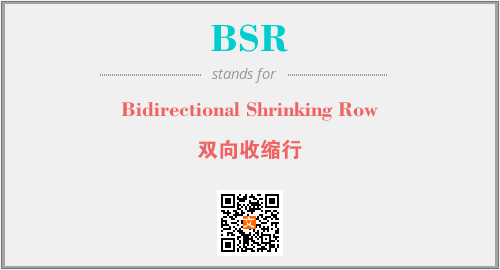 上述内容是“Bidirectional Shrinking Row”作为“BSR”的缩写,解释为“双向收缩行”时的信息,以及英文缩略词BSR所代表的英文单词,其对应的中文拼音、详细解释以及在英文中的流行度和相关分类、应用领域及应用示例等。