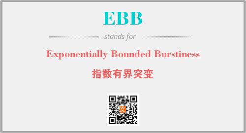 英文缩略词“EBB”经常作为“Exponentially Bounded Burstiness”的英文缩写来使用,中文表示:“指数有界突变”。本文将详细介绍英文缩写词EBB所代表英文单词,其对应的中文拼音、详细解释以及在英语中的流行度。此外,还有关于缩略词EBB的分类、应用领域及相关应用示例等。