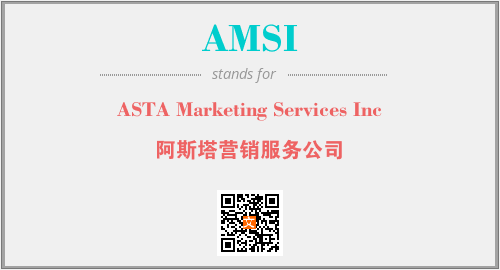 上述内容是“ASTA Marketing Services Inc”作为“AMSI”的缩写,解释为“阿斯塔营销服务公司”时的信息,以及英文缩略词AMSI所代表的英文单词,其对应的中文拼音、详细解释以及在英文中的流行度和相关分类、应用领域及应用示例等。