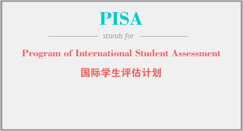 英文缩略词“PISA”经常作为“Program of International Student Assessment”的英文缩写来使用,中文表示:“国际学生评估计划”。本文将详细介绍英文缩写词PISA所代表英文单词,其对应的中文拼音、详细解释以及在英语中的流行度。此外,还有关于缩略词PISA的分类、应用领域及相关应用示例等。