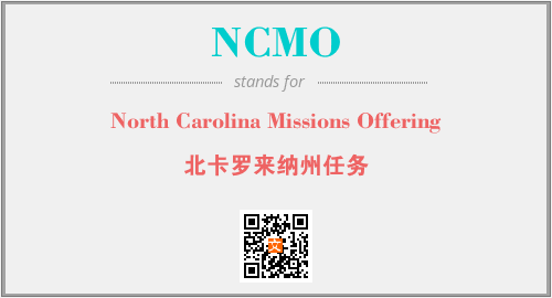 上述内容是“North Carolina Missions Offering”作为“NCMO”的缩写,解释为“北卡罗来纳州任务”时的信息,以及英文缩略词NCMO所代表的英文单词,其对应的中文拼音、详细解释以及在英文中的流行度和相关分类、应用领域及应用示例等。