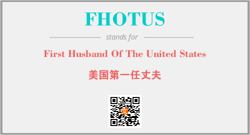 英文缩略词“FHOTUS”经常作为“First Husband Of The United States”的英文缩写来使用,中文表示:“美国第一任丈夫”。本文将详细介绍英文缩写词FHOTUS所代表英文单词,其对应的中文拼音、详细解释以及在英语中的流行度。此外,还有关于缩略词FHOTUS的分类、应用领域及相关应用示例等。