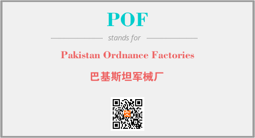 上述内容是“Pakistan Ordnance Factories”作为“POF”的缩写,解释为“巴基斯坦军械厂”时的信息,以及英文缩略词POF所代表的英文单词,其对应的中文拼音、详细解释以及在英文中的流行度和相关分类、应用领域及应用示例等。