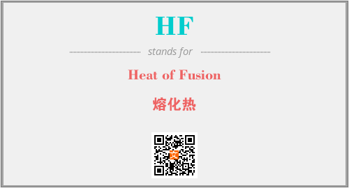 上述内容是“Heat of Fusion”作为“HF”的缩写,解释为“熔化热”时的信息,以及英文缩略词HF所代表的英文单词,其对应的中文拼音、详细解释以及在英文中的流行度和相关分类、应用领域及应用示例等。