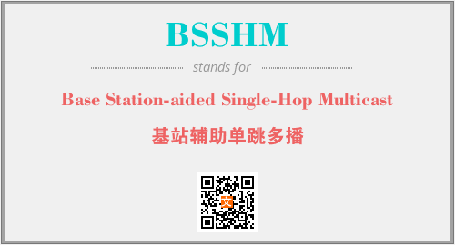 上述内容是“Base Station-aided Single-Hop Multicast”作为“BSSHM”的缩写,解释为“基站辅助单跳多播”时的信息,以及英文缩略词BSSHM所代表的英文单词,其对应的中文拼音、详细解释以及在英文中的流行度和相关分类、应用领域及应用示例等。
