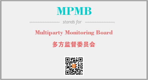 上述内容是“Multiparty Monitoring Board”作为“MPMB”的缩写,解释为“多方监督委员会”时的信息,以及英文缩略词MPMB所代表的英文单词,其对应的中文拼音、详细解释以及在英文中的流行度和相关分类、应用领域及应用示例等。