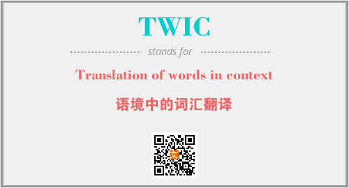 上述内容是“Translation of words in context”作为“TWIC”的缩写,解释为“语境中的词汇翻译”时的信息,以及英文缩略词TWIC所代表的英文单词,其对应的中文拼音、详细解释以及在英文中的流行度和相关分类、应用领域及应用示例等。