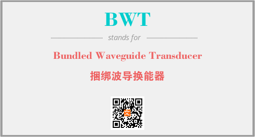 上述内容是“Bundled Waveguide Transducer”作为“BWT”的缩写,解释为“捆绑波导换能器”时的信息,以及英文缩略词BWT所代表的英文单词,其对应的中文拼音、详细解释以及在英文中的流行度和相关分类、应用领域及应用示例等。