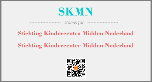 上述内容是“Stichting Kindercentra Midden Nederland”作为“SKMN”的缩写,解释为“Stichting Kindercenter Midden Nederland”时的信息,以及英文缩略词SKMN所代表的英文单词,其对应的中文拼音、详细解释以及在英文中的流行度和相关分类、应用领域及应用示例等。