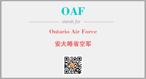 上述内容是“Ontario Air Force”作为“OAF”的缩写,解释为“安大略省空军”时的信息,以及英文缩略词OAF所代表的英文单词,其对应的中文拼音、详细解释以及在英文中的流行度和相关分类、应用领域及应用示例等。