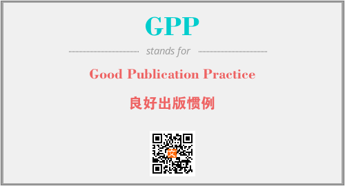 英文缩略词“GPP”经常作为“Good Publication Practice”的英文缩写来使用,中文表示:“良好出版惯例”。本文将详细介绍英文缩写词GPP所代表英文单词,其对应的中文拼音、详细解释以及在英语中的流行度。此外,还有关于缩略词GPP的分类、应用领域及相关应用示例等。
