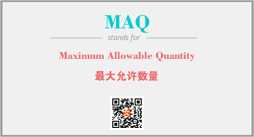 上述内容是“Maximum Allowable Quantity”作为“MAQ”的缩写,解释为“最大允许数量”时的信息,以及英文缩略词MAQ所代表的英文单词,其对应的中文拼音、详细解释以及在英文中的流行度和相关分类、应用领域及应用示例等。