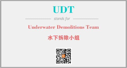 英文缩略词“UDT”经常作为“Underwater Demolitions Team”的英文缩写来使用,中文表示:“水下拆除小组”。本文将详细介绍英文缩写词UDT所代表英文单词,其对应的中文拼音、详细解释以及在英语中的流行度。此外,还有关于缩略词UDT的分类、应用领域及相关应用示例等。