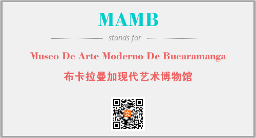 上述内容是“Museo De Arte Moderno De Bucaramanga”作为“MAMB”的缩写,解释为“布卡拉曼加现代艺术博物馆”时的信息,以及英文缩略词MAMB所代表的英文单词,其对应的中文拼音、详细解释以及在英文中的流行度和相关分类、应用领域及应用示例等。