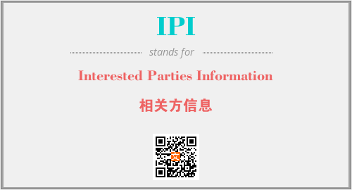 上述内容是“Interested Parties Information”作为“IPI”的缩写,解释为“相关方信息”时的信息,以及英文缩略词IPI所代表的英文单词,其对应的中文拼音、详细解释以及在英文中的流行度和相关分类、应用领域及应用示例等。