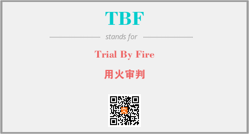 英文缩略词“TBF”经常作为“Trial By Fire”的英文缩写来使用,中文表示:“用火审判”。本文将详细介绍英文缩写词TBF所代表英文单词,其对应的中文拼音、详细解释以及在英语中的流行度。此外,还有关于缩略词TBF的分类、应用领域及相关应用示例等。