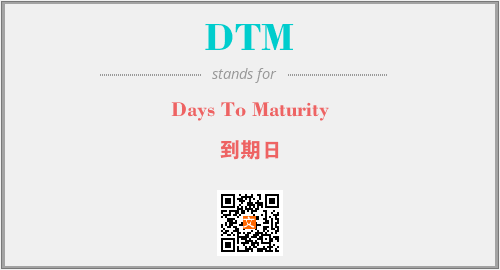 上述内容是“Days To Maturity”作为“DTM”的缩写,解释为“到期日”时的信息,以及英文缩略词DTM所代表的英文单词,其对应的中文拼音、详细解释以及在英文中的流行度和相关分类、应用领域及应用示例等。