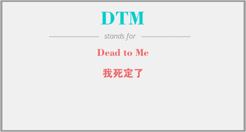上述内容是“Dead to Me”作为“DTM”的缩写,解释为“我死定了”时的信息,以及英文缩略词DTM所代表的英文单词,其对应的中文拼音、详细解释以及在英文中的流行度和相关分类、应用领域及应用示例等。