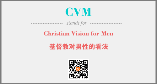 上述内容是“Christian Vision for Men”作为“CVM”的缩写,解释为“基督教对男性的看法”时的信息,以及英文缩略词CVM所代表的英文单词,其对应的中文拼音、详细解释以及在英文中的流行度和相关分类、应用领域及应用示例等。
