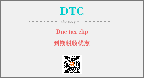 英文缩略词“DTC”经常作为“Due tax clip”的英文缩写来使用,中文表示:“到期税收优惠”。本文将详细介绍英文缩写词DTC所代表英文单词,其对应的中文拼音、详细解释以及在英语中的流行度。此外,还有关于缩略词DTC的分类、应用领域及相关应用示例等。
