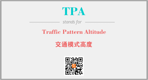 上述内容是“Traffic Pattern Altitude”作为“TPA”的缩写,解释为“交通模式高度”时的信息,以及英文缩略词TPA所代表的英文单词,其对应的中文拼音、详细解释以及在英文中的流行度和相关分类、应用领域及应用示例等。