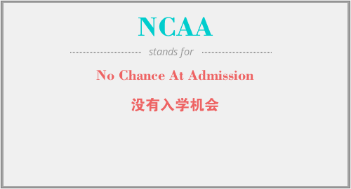 以上为No Chance At Admission英文缩略词NCAA的中文解释,以及该英文缩写在英语的流行度、分类和应用领域方面的信息。