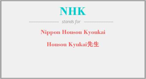 英文缩略词“NHK”经常作为“Nippon Housou Kyoukai”的英文缩写来使用,中文表示:“Housou Kyukai先生”。本文将详细介绍英文缩写词NHK所代表英文单词,其对应的中文拼音、详细解释以及在英语中的流行度。此外,还有关于缩略词NHK的分类、应用领域及相关应用示例等。