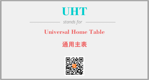 英文缩略词“UHT”经常作为“Universal Home Table”的英文缩写来使用,中文表示:“通用主表”。本文将详细介绍英文缩写词UHT所代表英文单词,其对应的中文拼音、详细解释以及在英语中的流行度。此外,还有关于缩略词UHT的分类、应用领域及相关应用示例等。