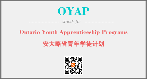 上述内容是“Ontario Youth Apprenticeship Programs”作为“OYAP”的缩写,解释为“安大略省青年学徒计划”时的信息,以及英文缩略词OYAP所代表的英文单词,其对应的中文拼音、详细解释以及在英文中的流行度和相关分类、应用领域及应用示例等。