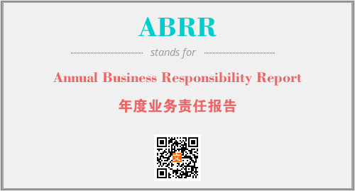上述内容是“Annual Business Responsibility Report”作为“ABRR”的缩写,解释为“年度业务责任报告”时的信息,以及英文缩略词ABRR所代表的英文单词,其对应的中文拼音、详细解释以及在英文中的流行度和相关分类、应用领域及应用示例等。