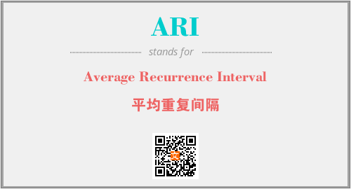上述内容是“Average Recurrence Interval”作为“ARI”的缩写,解释为“平均重复间隔”时的信息,以及英文缩略词ARI所代表的英文单词,其对应的中文拼音、详细解释以及在英文中的流行度和相关分类、应用领域及应用示例等。