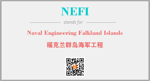 上述内容是“Naval Engineering Falkland Islands”作为“NEFI”的缩写,解释为“福克兰群岛海军工程”时的信息,以及英文缩略词NEFI所代表的英文单词,其对应的中文拼音、详细解释以及在英文中的流行度和相关分类、应用领域及应用示例等。