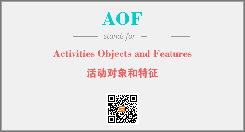 上述内容是“Activities Objects and Features”作为“AOF”的缩写,解释为“活动对象和特征”时的信息,以及英文缩略词AOF所代表的英文单词,其对应的中文拼音、详细解释以及在英文中的流行度和相关分类、应用领域及应用示例等。
