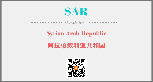 英文缩略词“SAR”经常作为“Syrian Arab Republic”的英文缩写来使用,中文表示:“阿拉伯叙利亚共和国”。本文将详细介绍英文缩写词SAR所代表英文单词,其对应的中文拼音、详细解释以及在英语中的流行度。此外,还有关于缩略词SAR的分类、应用领域及相关应用示例等。