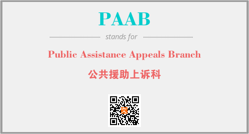 以上为Public Assistance Appeals Branch英文缩略词PAAB的中文解释,以及该英文缩写在英语的流行度、分类和应用领域方面的信息。