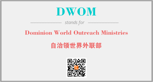 上述内容是“Dominion World Outreach Ministries”作为“DWOM”的缩写,解释为“自治领世界外联部”时的信息,以及英文缩略词DWOM所代表的英文单词,其对应的中文拼音、详细解释以及在英文中的流行度和相关分类、应用领域及应用示例等。