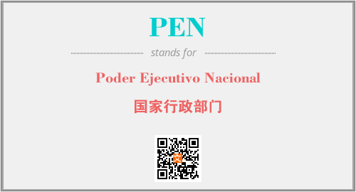 上述内容是“Poder Ejecutivo Nacional”作为“PEN”的缩写,解释为“国家行政部门”时的信息,以及英文缩略词PEN所代表的英文单词,其对应的中文拼音、详细解释以及在英文中的流行度和相关分类、应用领域及应用示例等。