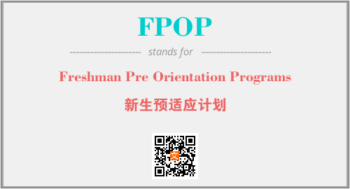 以上为Freshman Pre Orientation Programs英文缩略词FPOP的中文解释,以及该英文缩写在英语的流行度、分类和应用领域方面的信息。
