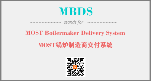 上述内容是“MOST Boilermaker Delivery System”作为“MBDS”的缩写,解释为“MOST锅炉制造商交付系统”时的信息,以及英文缩略词MBDS所代表的英文单词,其对应的中文拼音、详细解释以及在英文中的流行度和相关分类、应用领域及应用示例等。