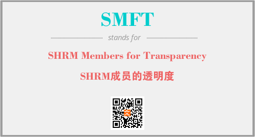 英文缩略词“SMFT”经常作为“SHRM Members for Transparency”的英文缩写来使用,中文表示:“SHRM成员的透明度”。本文将详细介绍英文缩写词SMFT所代表英文单词,其对应的中文拼音、详细解释以及在英语中的流行度。此外,还有关于缩略词SMFT的分类、应用领域及相关应用示例等。