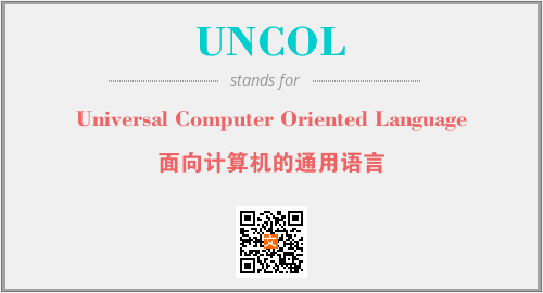 上述内容是“Universal Computer Oriented Language”作为“UNCOL”的缩写,解释为“面向计算机的通用语言”时的信息,以及英文缩略词UNCOL所代表的英文单词,其对应的中文拼音、详细解释以及在英文中的流行度和相关分类、应用领域及应用示例等。