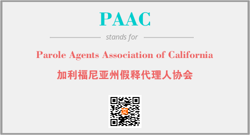 上述内容是“Parole Agents Association of California”作为“PAAC”的缩写,解释为“加利福尼亚州假释代理人协会”时的信息,以及英文缩略词PAAC所代表的英文单词,其对应的中文拼音、详细解释以及在英文中的流行度和相关分类、应用领域及应用示例等。